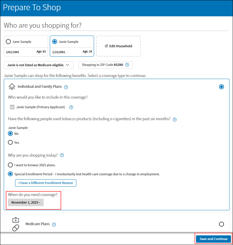 Note: If it's outside the Open Enrollment Period (OEP), select I'm losing group coverage, had a life-changing event, or need to enroll outside of the annual Open Enrollment Period.