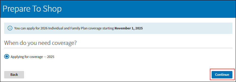 1. Choose when you need coverage, select Continue. If you're currently enrolled in a plan, you will see your current plans. You can select View Plan Details to review your application and edit your information.